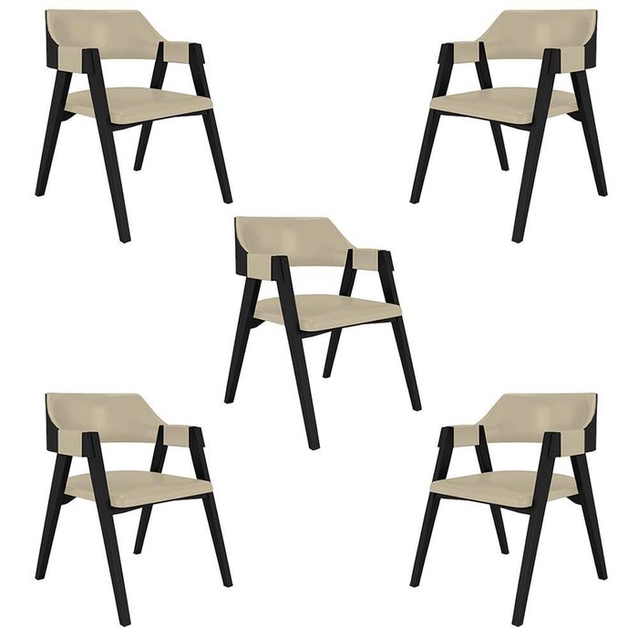 Kit 5 Cadeiras Sala De Jantar E Jogos Carteados Madeira Maciça Poker Pu Bege/preto G42 - Gran Belo