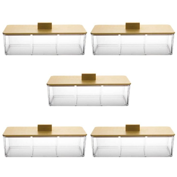 Kit 5 Caixas para Chá Organizador 3 Divisórias Plástico Tamp bambu