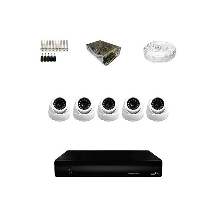 KIT 5 Câmeras Dome AHD + DVR 8 Canais + Acessórios