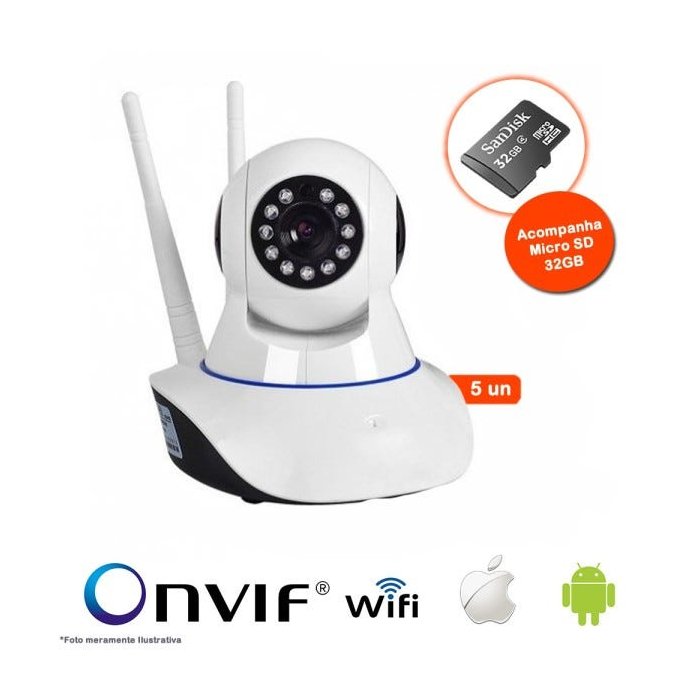 Kit 5 Câmeras Ip Wifi Hd 720P Robo Wireless, Grava Em Cartão Sd, Visão Noturna C/Micro Sd 32Gb