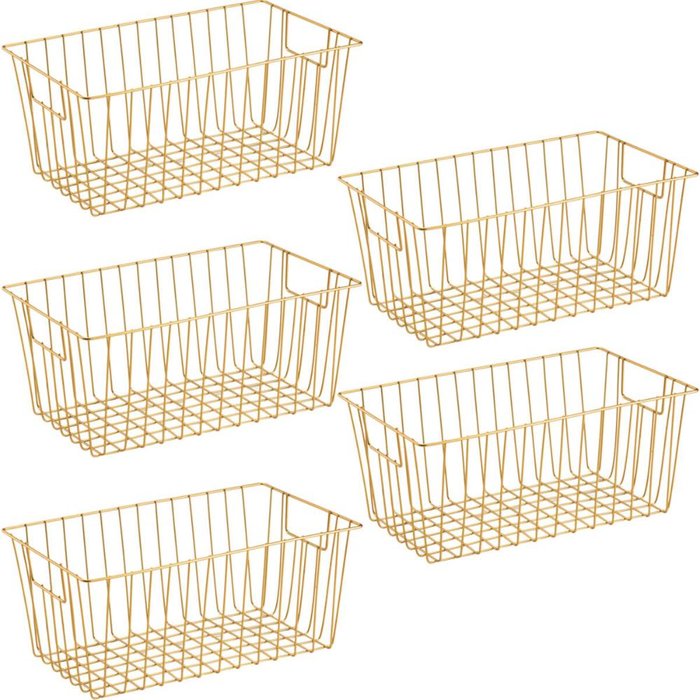 Kit 5 Cestos Aramados Multiuso Organizadores Retangulares Dourados Arthi Lavanderia Banheiro Dourado