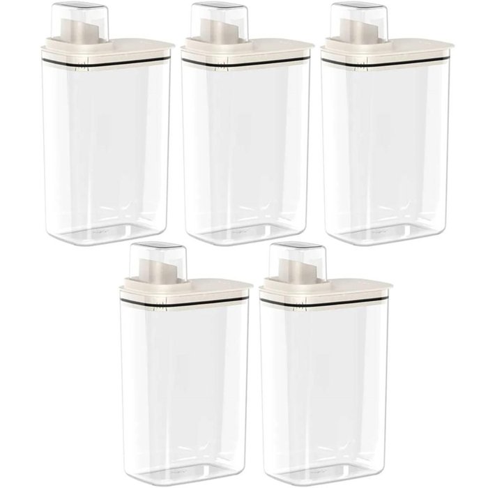 Kit 5 Dispenser de Sabão Líquido 2,3l Bege Tampa Medidora ou para Amaciante Detergente