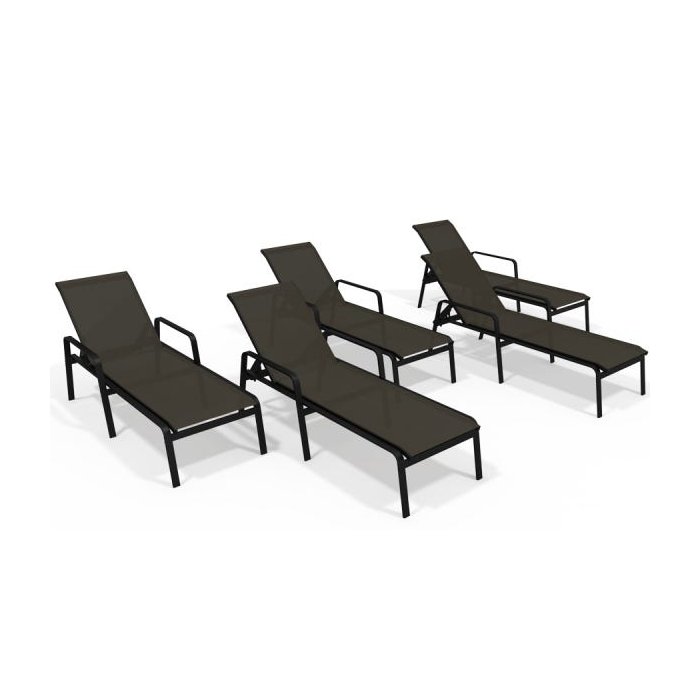 Kit 5 Espreguiçadeira Piscina Alumínio Preto Tela Marrom