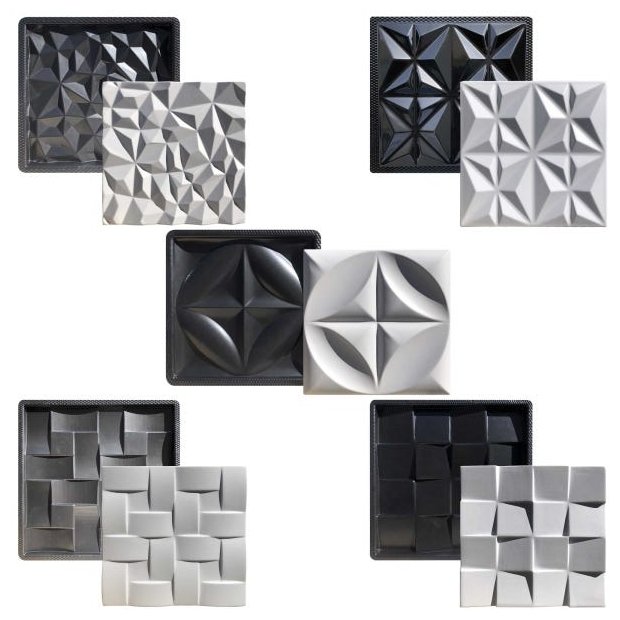 Kit com 5 Formas de Gesso 3D ABS GrandesMolde ABS Forma 3D utilizada para fabricação de placa de gesso decorativa para Parede 3D em áreas internas e externas (Para uso externo recomendamos que seja fabricada com um mix de gesso e cimento)A forma é fabricada com ABS virgem (plástico semi-rígido) de 1.5mm, não acompanhando a manta de e.v.a