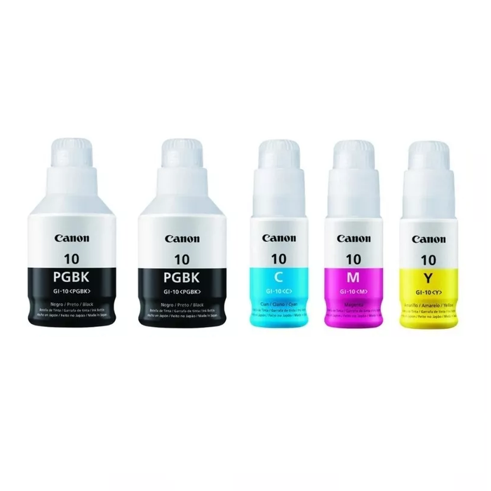 Kit 5 Garrafas de Tinta Original Canon Gi-10 Gi10 G10 G6010 G5010 Preto e Tricolor (Ciano, Magenta e Amarelo)