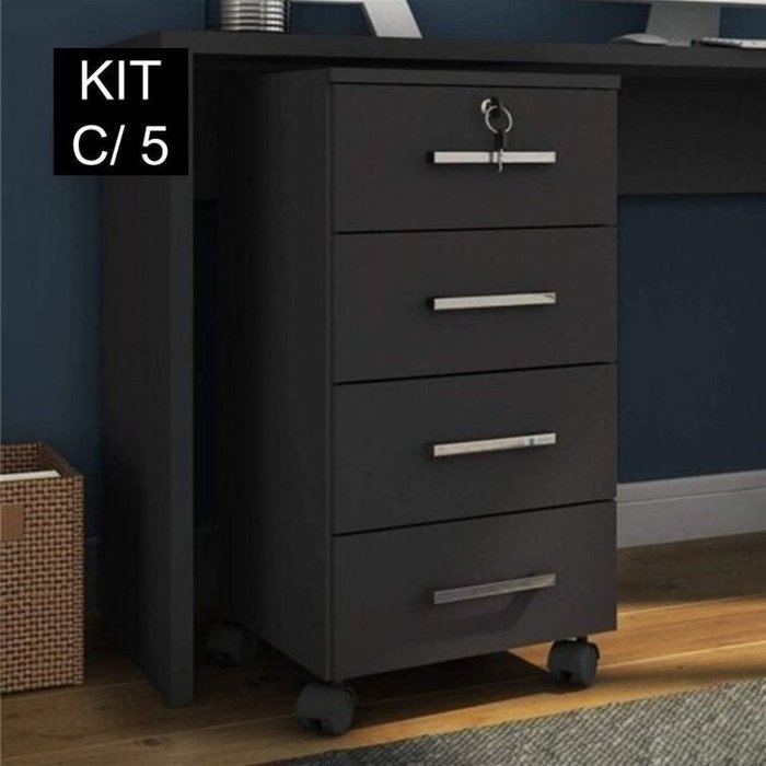 Kit 5 Gaveteiros 4 Gavetas com Rodízios e Chave Gávea Office