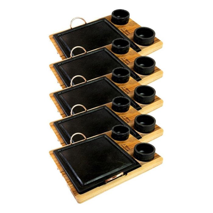 Kit 5 Grelha 10 Molheiras Em Pedra Sabão E Suporte P 20x20cm