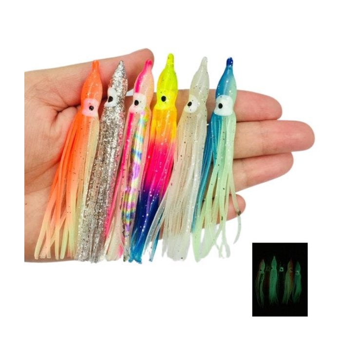 Kit 5 Iscas Artificiais Lulas Luminosa Tucunaré Pampo Robalo