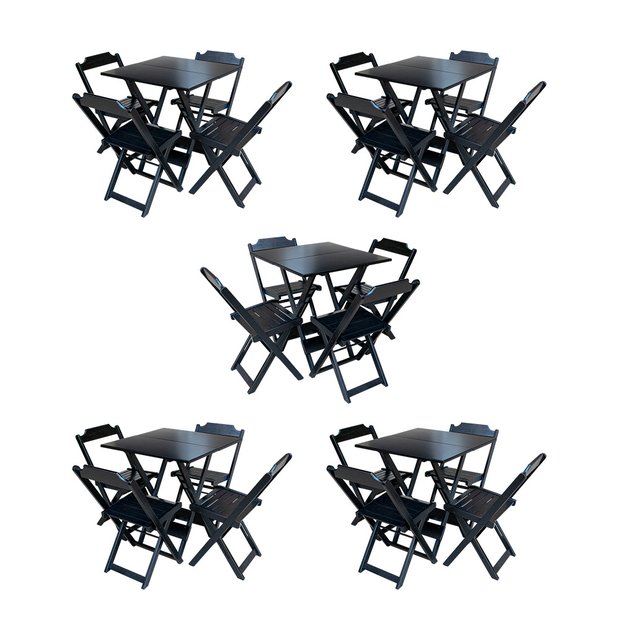 Kit 5 Jogos de Mesa Dobravel com 4 Cadeiras de Madeira 70x70 para Restaurante e Bar - Preto Preto