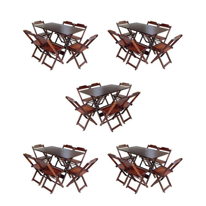 Kit 5 Jogos De Mesa Dobravel Com 6 Cadeiras De Madeira 120x70 Para Restaurante E Bar - Imbuia