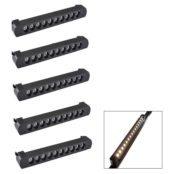 Kit 5 Luminária Led Pontual Linear 20w 3000k para Trilho Preto Bivolt