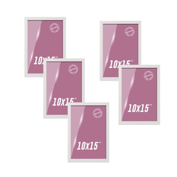 Kit 5 Molduras Porta Retrato Branco 10x15 A6 com Vidro Sala Quarto