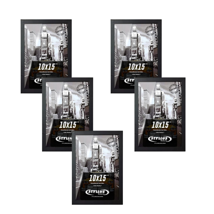 Kit 5 Molduras Porta Retrato Preto 10x15 A6 com Vidro Sala Quarto