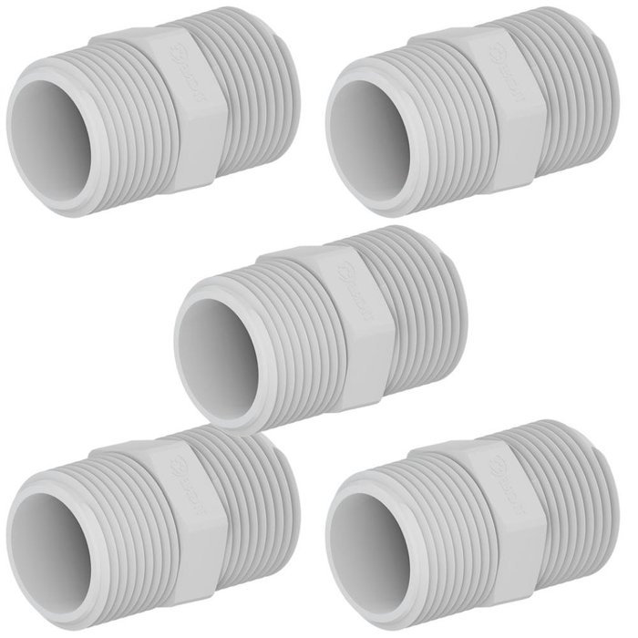 Kit 5 Nipel Niple Roscável União Pvc Branco para Canos e Tubos Água Fria de 1” Polegada 32mm