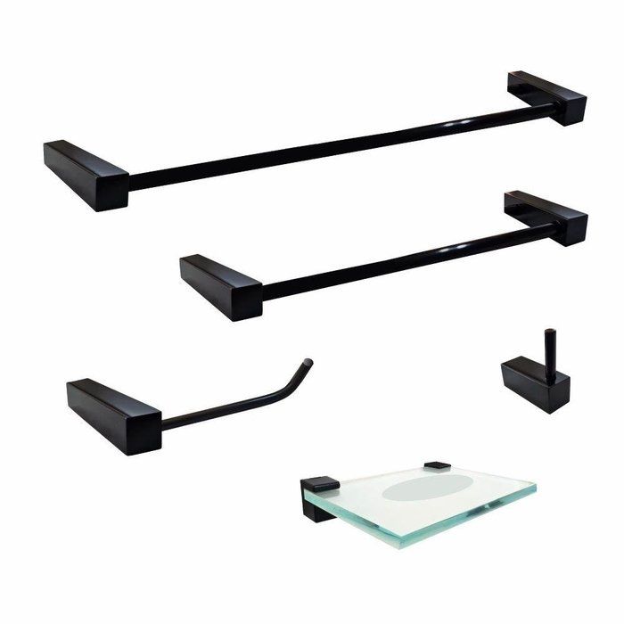 Kit 5 Peças Acessórios para Banheiro Preto Fosco PrátikaLindos kits de acessórios para banheiro em metal preto acetinado, inovando seu ambiente com um design em linhas retas acompanhando a tendência do mundo moderno. Fácil de instalar, e uma variedade de modelos. A Grego Metal levando funcionalidade e praticidade ao seu cotidiano, com preços acessíveis direto de fábrica...