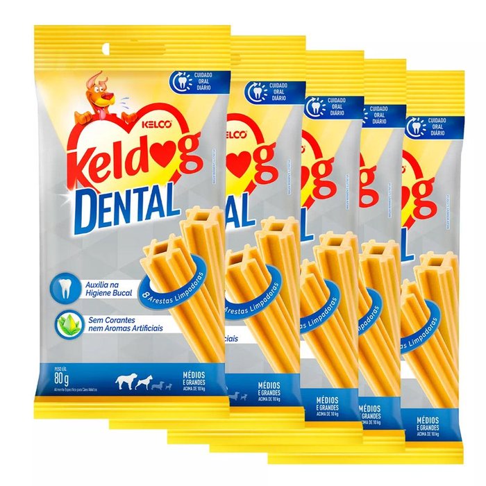 | Modelo | Kit 5 Petisco Keldog Dental Cães Limpeza de dentes Cuidado Oral Cães Médios e Grandes 80G |