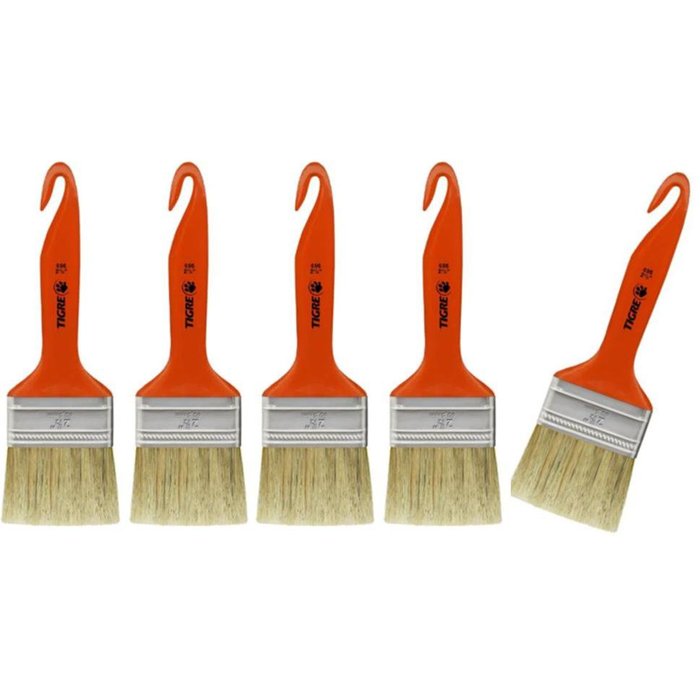CONTEÚDO:Kit 5 Pincel Trinchas Para Pintura Tigre Media 696 2 1/2 Polegadas Cerda Branca -- Verniz / Stain / Madeira * PRONTA-ENTREGA: Para grande São Paulo Enviamos no mesmo dia, comprando antes das 12Hrs.