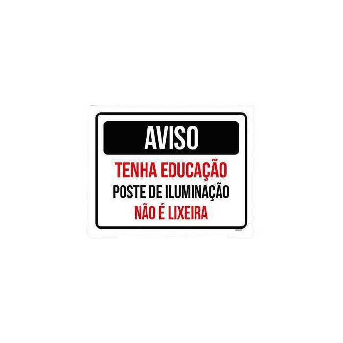 Kit 5 Placas Aviso Tenha Educação Poste Iluminação Lixo