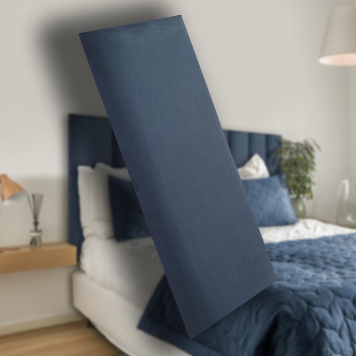 Kit 5 Placas Cabeceira Estofada Suede para Cama Box Solteiro - Módulo 20cm X 60cm Gh Papel de Parede Azul