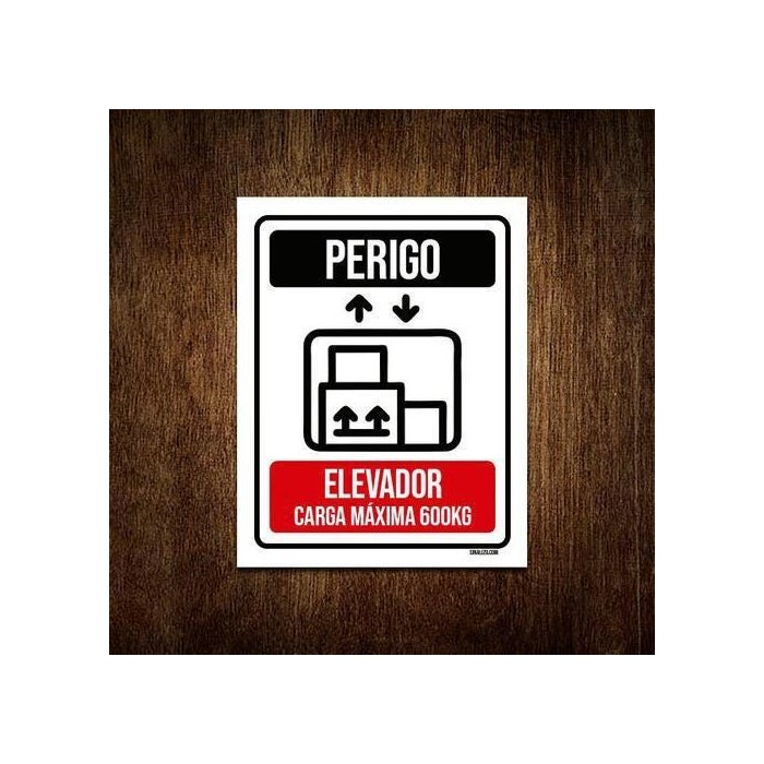 Kit 5 Placas Perigo Elevador Carga Máxima 600 Kg