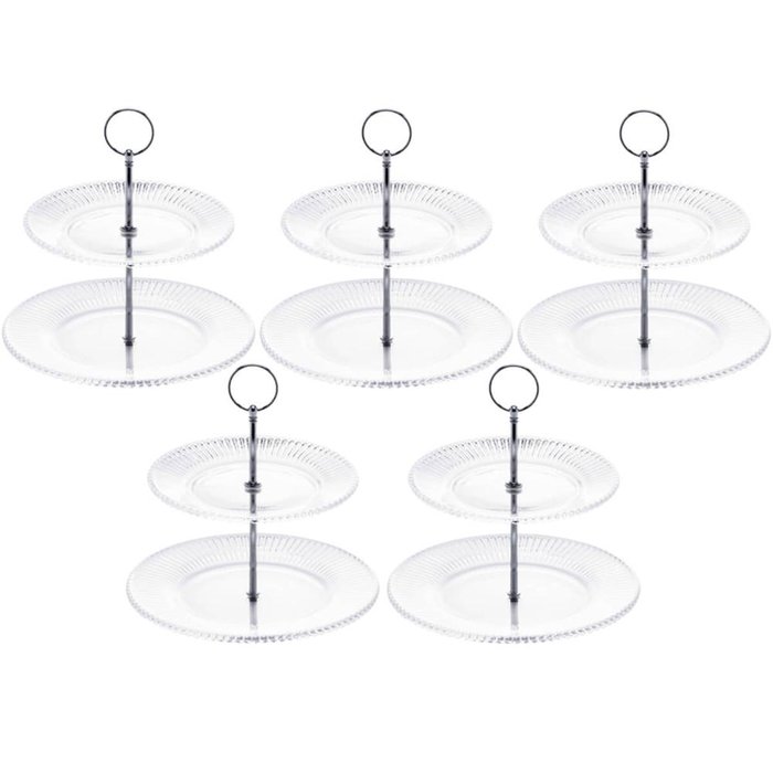 Kit 5 Porta Doces Festas Duplo 2 Andares 23x25cm Cristal Salgados Docinhos