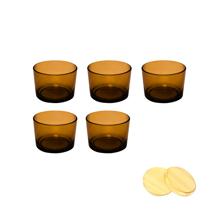 Kit 5 Potes de Vidro Patê Ambar com Tampa 120ml Potes de Armazenamento - Herméticos - Vidro - Plásti Ambar