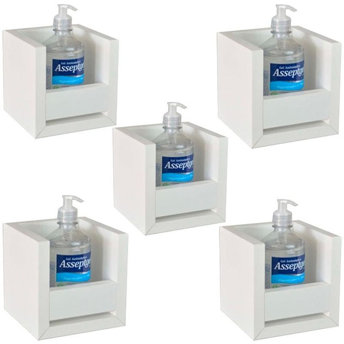 Kit 5 Prateleira Dispenser para Álcool em Gel 15cm Branco Mdf