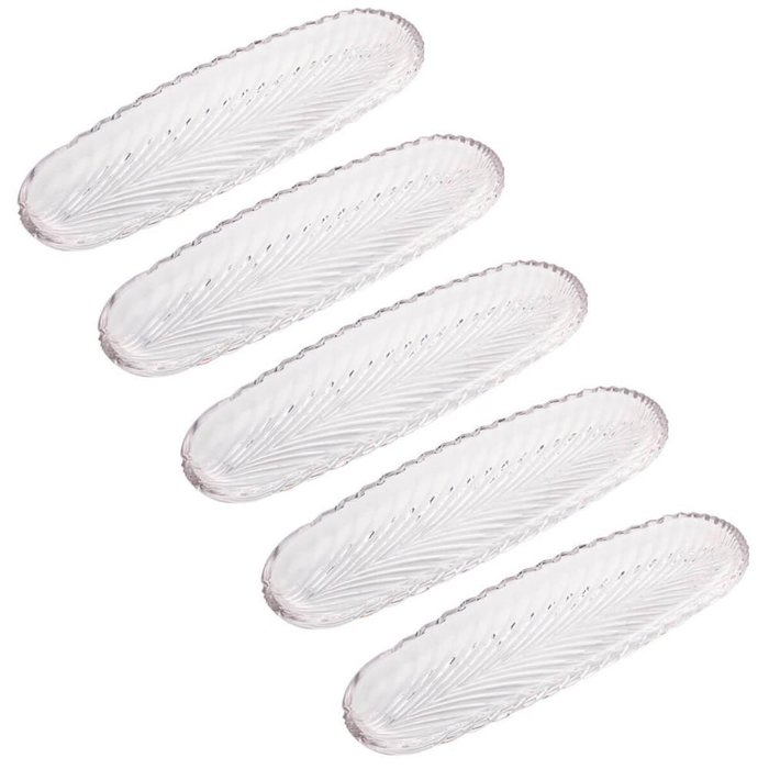 Kit 5 Pratos de Cristal Leaf 39x14cm Lyor Travessa Bandeja Pães Doces Hotel Pousada