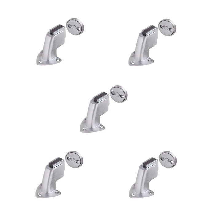 Descrição Técnica: PRENDEDOR MAGNÉTICO PARA PORTAS COM FIXAÇÃO NO PISO OU PAREDE. MATERIAL ZAMAK E AÇO