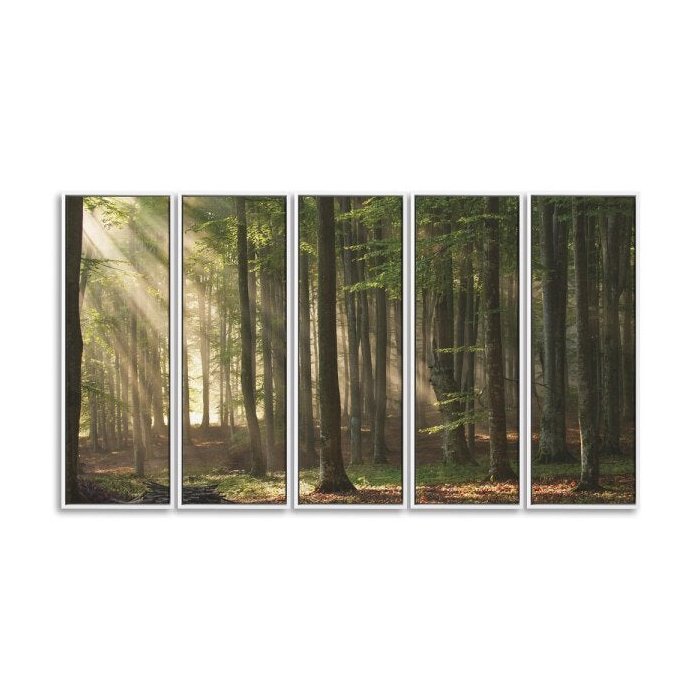 Kit 5 Quadros 90x150cm Coleção Zatiak Paisagem Floresta no Outono Canvas Flutuante Branca - Oppen Ho