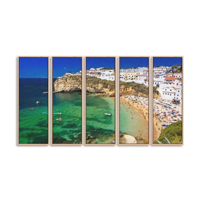 Kit 5 Quadros 90x150cm Coleção Zatiak Rocha do Algarve Canvas Flutuante Natural - Oppen House
