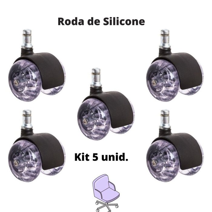 Kit 5 Rodinhas para Cadeira de Escritório Silicone Pino 11mm