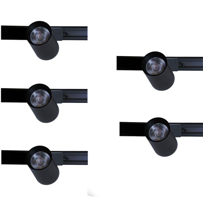 Kit 5 Spot Led Poptem para Trilho Eletrificado Preto 7w 3000k Bivolt