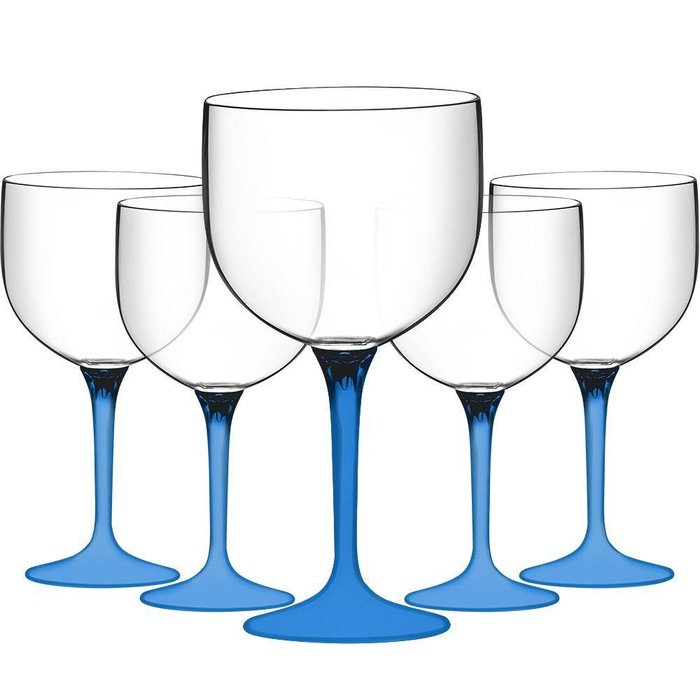 Kit 5 Taça Gin Transparente Haste Coloridas Festas Cor:azul Única