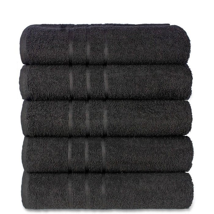 Kit 5 Toalhas De Rosto Branca Hotel Macia Felpuda - Prata - Preto