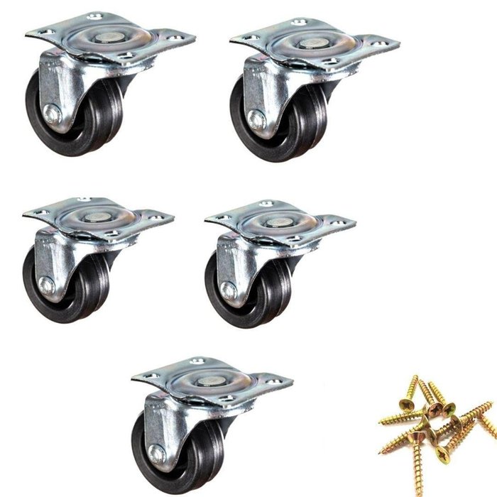 Kit 5 Und Roda Rodinhas Giratória Rodízio Móveis 32Mm Preto
