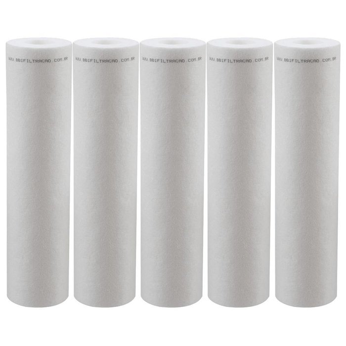 O Kit contém 5 Refis Filtro Polipropileno BBI 93/4 PP10/20B que se destacam por conta do custo-benefício oferecido em seu uso, possuem boa vida útil e cumprem com excelência sua função, com funcionamento direto através de manutenções preventivas. Esses produtos são usados, por exemplo, na indústria alimentícia e farmacêutica, onde não se pode utilizar água com qualquer impureza.