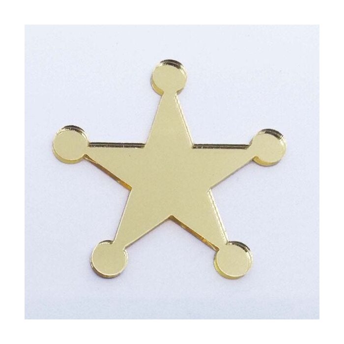 Kit 50 Aplique Estrela de xerife Faroeste Acrilico Espelhado Ap102 - Acrílico Espelhado Prata
