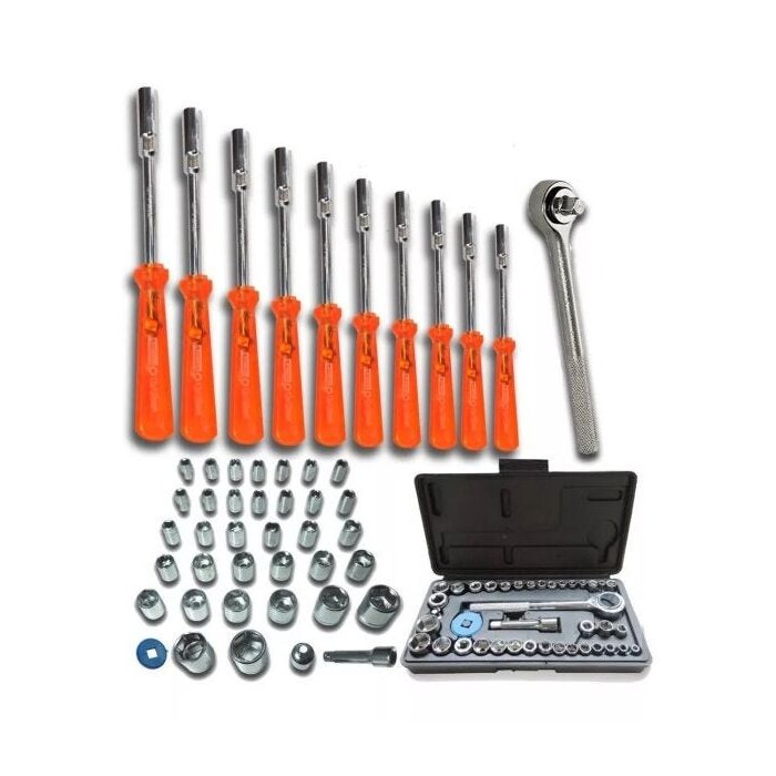 Kit 50 Ferramentas Chave Canhão 5 À 14mm Soquete E Catraca