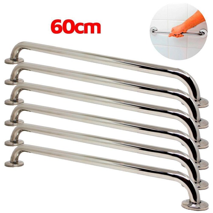 Kit 6 Alça / Barra De Apoio / Suporte Para Parede Inox 60cm