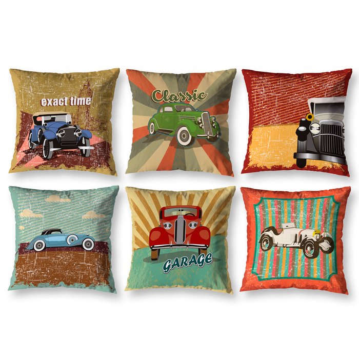 Kit 6 Almofadas Sala Quarto 40cm x 40cm Carros Antigos Vintage