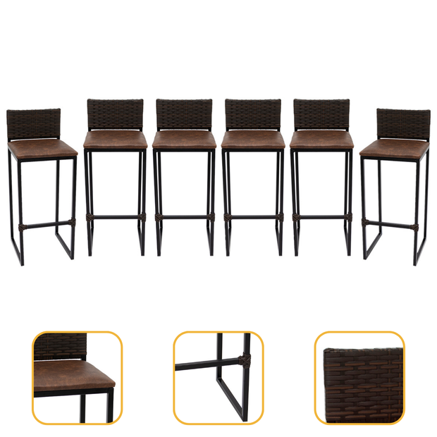 Kit 6 Bancos Quadrado Junco Argila para Bancada Alta Cozinha Área Gourmet Bistrô Piscina Bar Marrom Claro