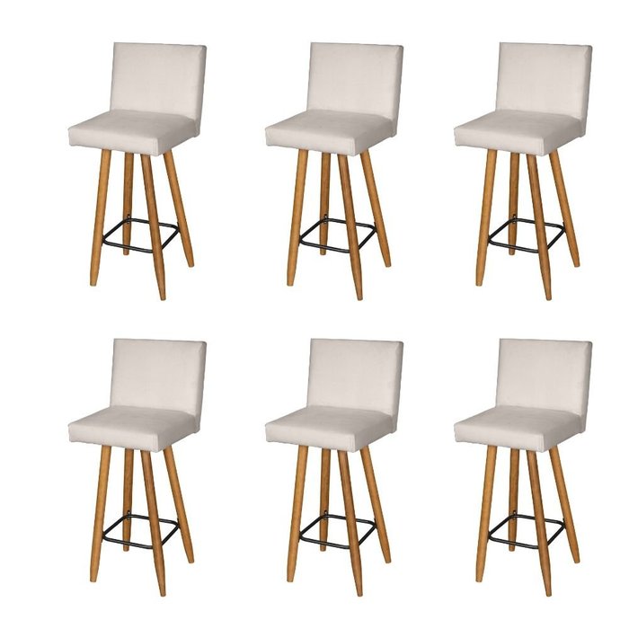 Kit 6 Banqueta Alta com encosto Olivia Balcão Cozinha Bistrô Pé Castanho Suede Bege - Mafer Móveis M