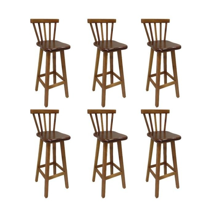 Kit 6 Banqueta Alta de Madeira com Encosto Country Padrão Jequitibá