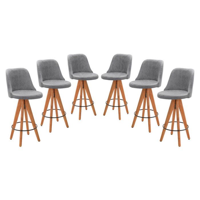 Kit 6 Banquetas Altas Giratórias Júlia Cinza