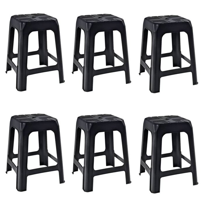Kit 6 Banquetas de Plástico Preta Banquinho Empilhável