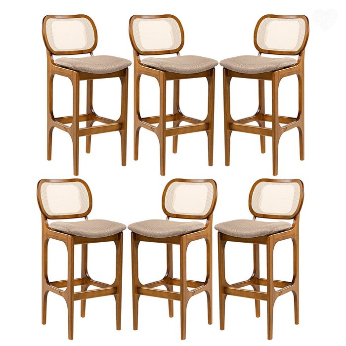 Kit 6 Banquetas para Área Gourmet Decor Encosto Rattan Madeira Imbuia Linho Marrom L87 Rmi Imbuia