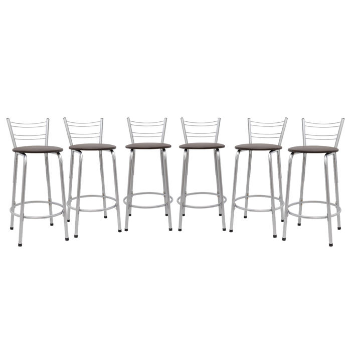 Kit 6 Banquetas para Balcão Flórida Prata 60cm Cozinha Gourmet Bistrô Bancada Piscina Área de Lazer Marrom Escuro