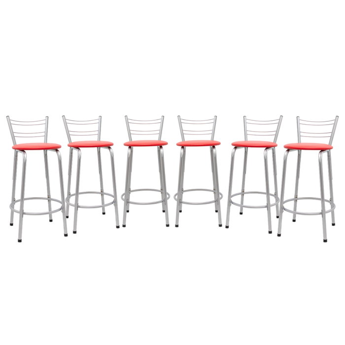 Kit 6 Banquetas para Balcão Flórida Prata 60cm Cozinha Gourmet Bistrô Bancada Piscina Área de Lazer Assento Vermelho