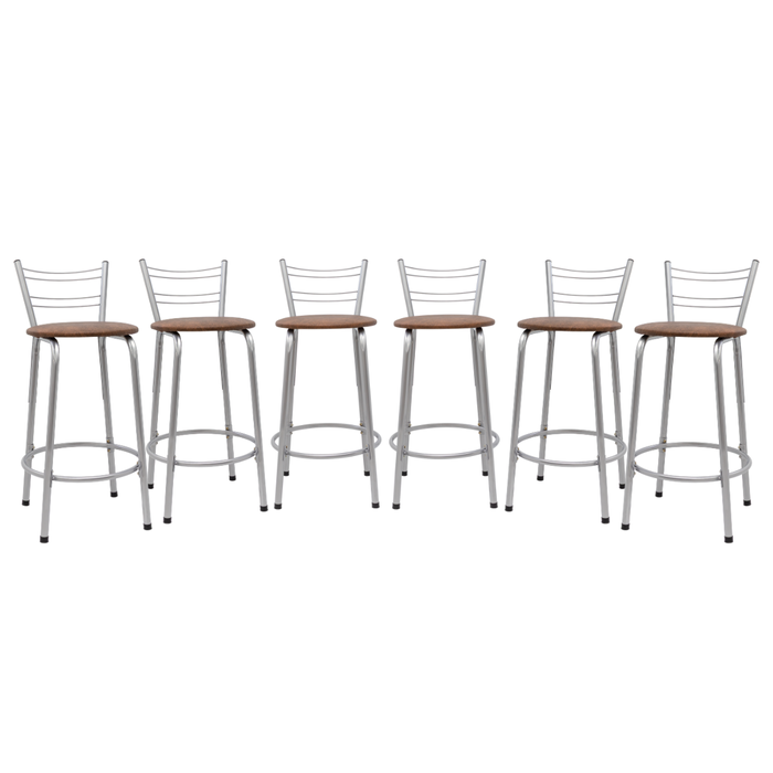 Kit 6 Banquetas para Balcão Flórida Prata 60cm Cozinha Gourmet Bistrô Bancada Piscina Área de Lazer Marrom Claro